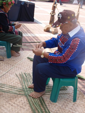 現場耆老編織手工藝竹籃