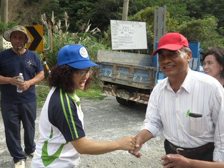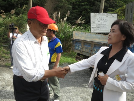 台九線459.5k處路基整修工程-主席與立委夫人戴錦花握手致謝